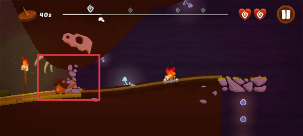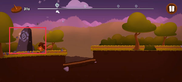 当遇到这种阻挡你前进的障碍物,就点击左边的屏幕来挥动角色手上的棒槌来将道路打通即可。