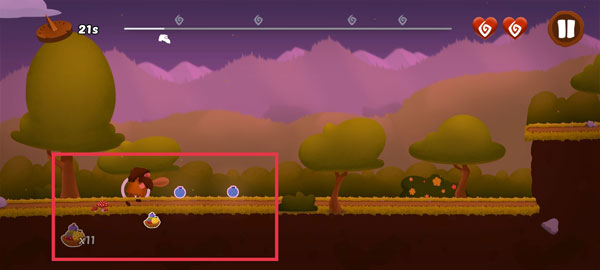 跟传统相同的就是,它采用的果实在跑酷的道路上,只有靠近水果的时候才能获取到它们。