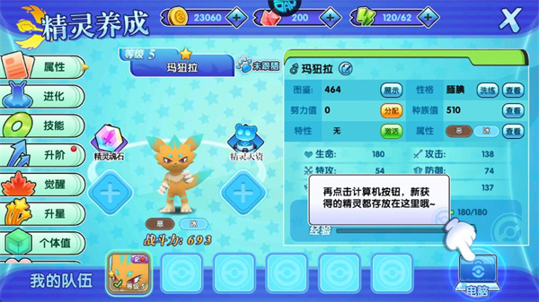 7、这里点击计算机按钮,新获得的精灵都存放在这里哦~