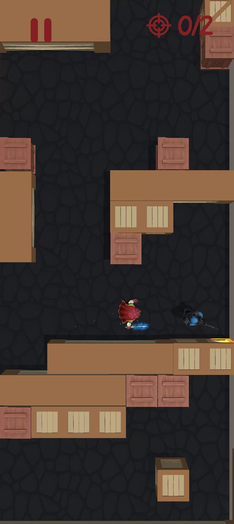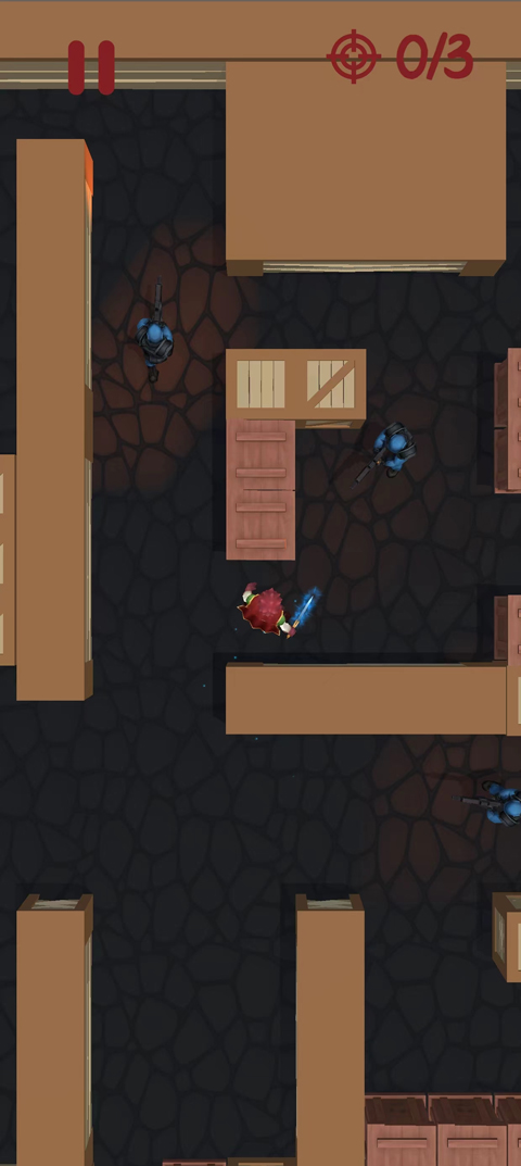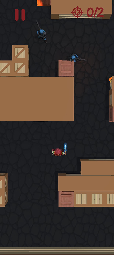 进入到暗影杀手游戏中之后,点击屏幕就可以进行攻击或者躲避攻击,我们需要击杀地图上所有的蓝衣守卫,因为我们用的是冷兵器,敌人用的是热武器,所以不能选择硬拼,需要去逐个击破,击杀一个蓝衣守卫之后我们会获得一些砖石,砖石可以用来增加我们的属性。总体来说是一款十分不错的休闲小游戏,非常适合闲暇之余打发时间。