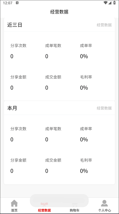 2、然后,在经营数据中能够很好的浏览到分享次数、成单笔数、成单率、分享金额、成交金额、毛利率等信息;