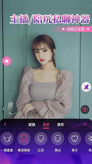 脸上长痘,毛孔变粗,皮肤晒黑,也不用怕微信视频通话,视频聊天也能美颜,精细磨皮美白,亮眼白牙,精准大眼瘦脸,细高鼻,让你素颜也能在视频聊天中展示高级网红脸,美白嫩肤打造少女肌,效果堪比美颜相机。