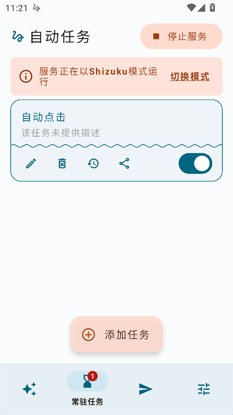 支持基础的无障碍服务模式,也支持通过Shizuku获取更高权限的高级模式。