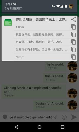 最让我感动的是它完全免费还绿色无广告,这一点对强迫症患者来说简直是救星!毕竟谁不想用起来既清爽又放心呢?总的来说,这个app真的很适合需要高效管理复制内容的人,尤其是像我这样喜欢轻便工具的用户。