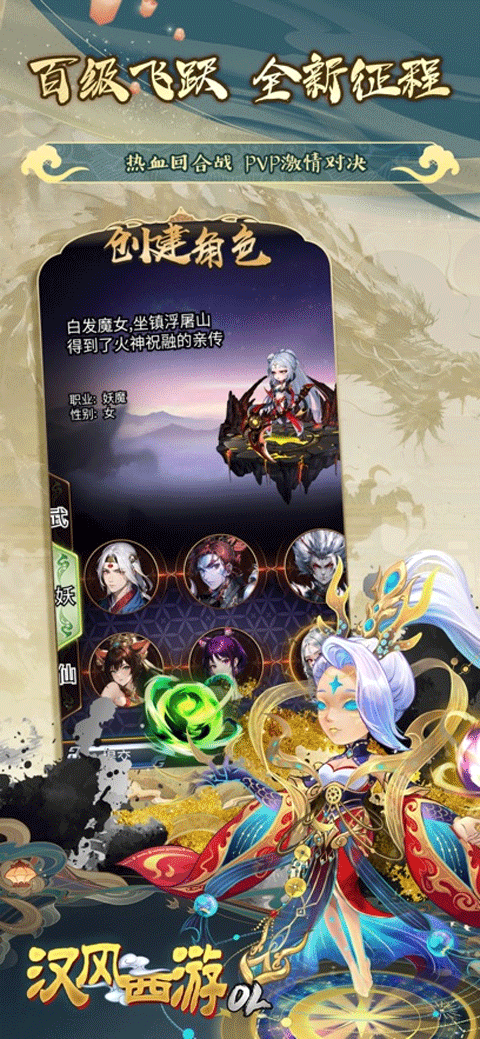 在汉风西游ol游戏中拥有各种各样的职业,玩家可以体验到西游中的每一个经典人物角色,铁扇、地藏、白象、阎罗、哪咤甚至是金角大王等等,不论是神还是魔,是人还是妖,在这里都有存在的意义,并且这些角色都有着自己独特的属性和技能,玩家们可以选择不同的角色进行游戏冒险。