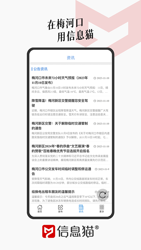 3、实时更新:信息猫会及时更新最新的信息,确保用户能够在第一时间了解到当天所发生的各种事情。