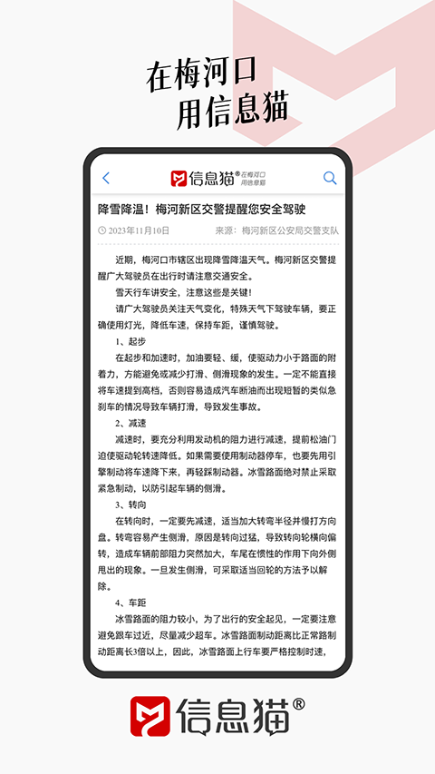 2、内容丰富:与梅河口网站数据实时同步,汇集新鲜生活信息、公告资讯以及本地常用查询。