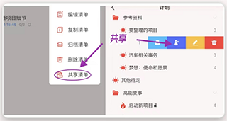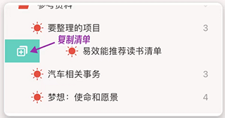 2、左滑:对项目/清单进行共享、编辑、删除便捷操作,右滑:可复制清单。
