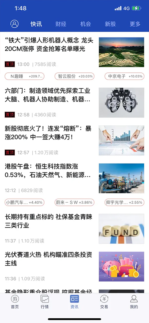 4、资讯研究:提供强大的资讯内容,囊括财经热点新闻、行业动态、个股机会、新股资讯、数据掘金、港股、美股、基金、理财等全面资讯内容。