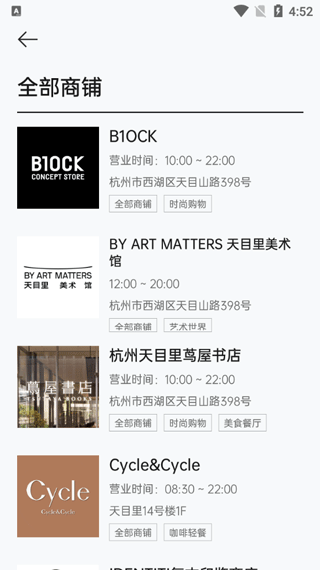 另外,目里app还有天目里商城的所有线下商铺,也可以通过软件来了解所有店铺的动态以及详情介绍,用户不用出门就可以逛遍所有的店铺,并且软件还支持线上下单,用户可以方便快捷的进行线上下单线下拿货,让用户的生活更加便利,有需要的用户快来下载吧。