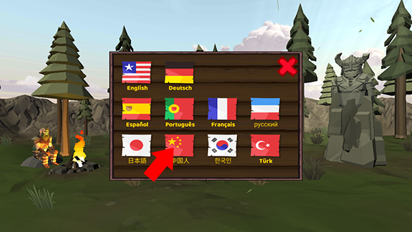 3、之后选择中国国旗即可完成中文的设置,最后返回主界面点击“玩”即可开始游戏。