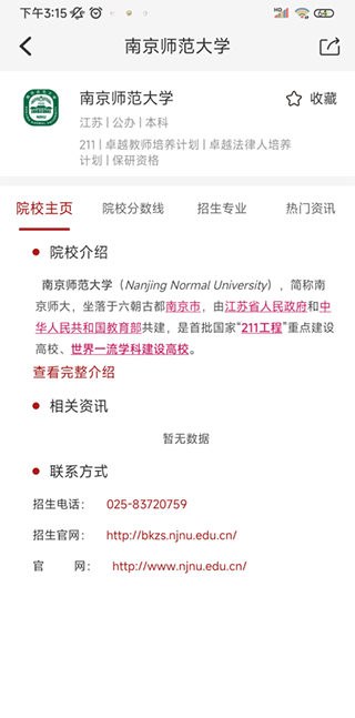 2、如图:查询到该所院校后,可以查看到学校主页。