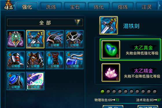 玩家可以根据自己的情况,对自己的装备和法宝进行强化,五行真金和太乙真金失败会降低等级,五行精金和太乙精金失败不会降低等级,建议+4以后使用五行精金和太乙精金。