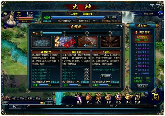 玩家可以在游戏中以触发的形式开启天劫,全服玩家将以渡过天劫为目的,最终渡过天劫,开启游戏新的篇章!