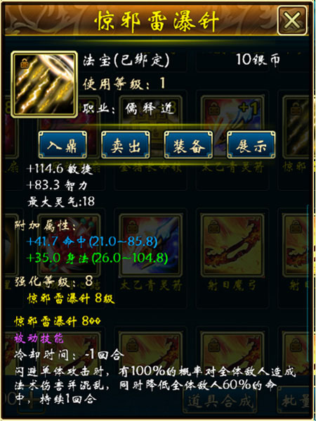 蜀山传奇的顶级法宝,具有强大的法力,能够大大增加散仙的战斗力,可以在大闹龙宫之神器现世,仙草还魂等限时活动中获得,具体展示如下: