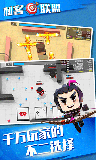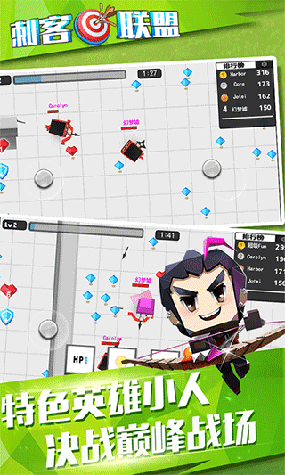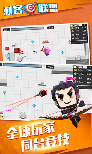 刺客联盟最新版是一款休闲对战竞技类游戏,简约的3d像素画风,富含时尚的美术风格,充满年轻化气息的英雄设计,为您呈现极佳的战斗体验。在游戏中玩家们将操控Q萌的小角色使用弓箭在地图中与敌人展开作战,充分利用地形走位躲避敌人的攻击,在快节奏的战场中展现你的瞄准技巧,而且角色无需发育,玩家随时随地都能畅快PK,享受极致的竞技体验。另外游戏还有丰富的角色等待玩家解锁体验,每个角色都个性鲜明,独具特色,您确定不来试试吗?