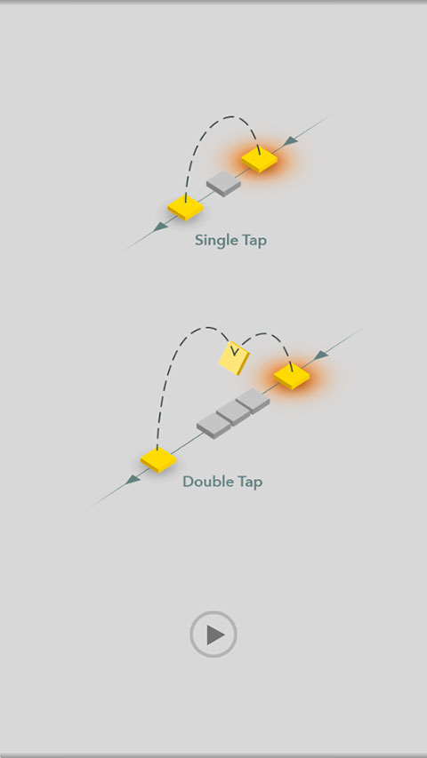 点击屏幕让我们控制的小方块起跳就可以了,点击一次屏幕跳一次,双击则是二连跳,我们要做的就是躲过路径上的灰色方块,从而尽可能的达到更高的地方。