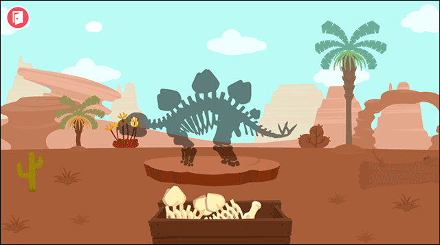 8、接下来就是拼接恐龙了,需要把下方的恐龙骨头移动到上方正确的位置;