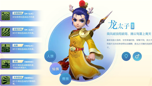 禀承龙族之血统,生性争强好胜,桀骜不驯。龙太子凭借天生的优势领悟仙法精髓,是当之无愧的龙族骄子。
