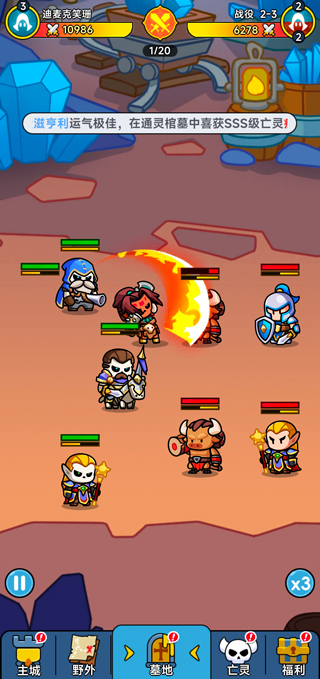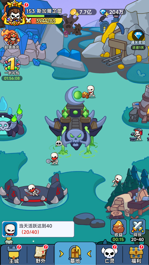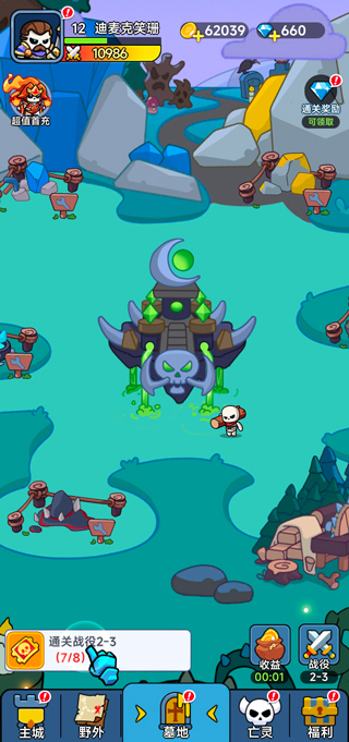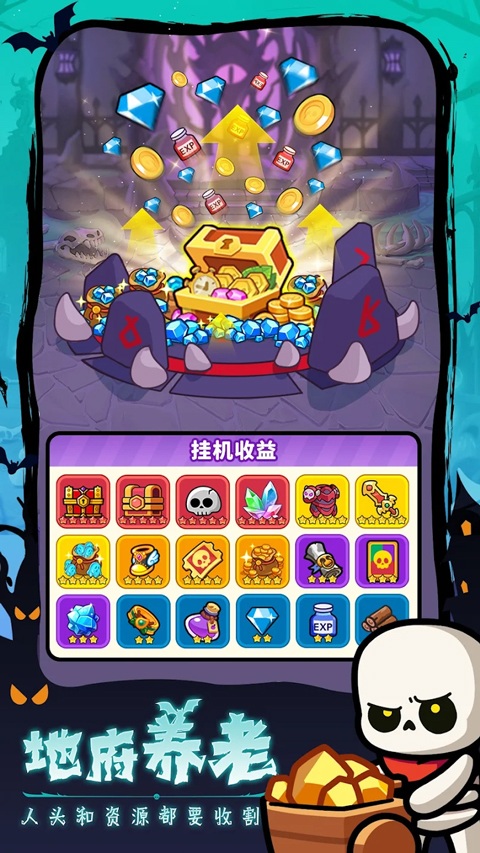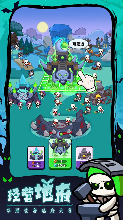 在墓地派遣骷髅兵,建造你的专属亡灵家园。每个建筑都提供不同BUFF加成,让你的反派之路如虎添翼!