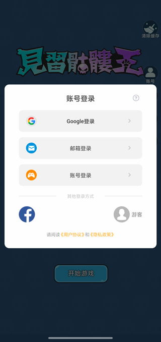 1、打开见习骷髅王手游,登录账号,支持游客登录;