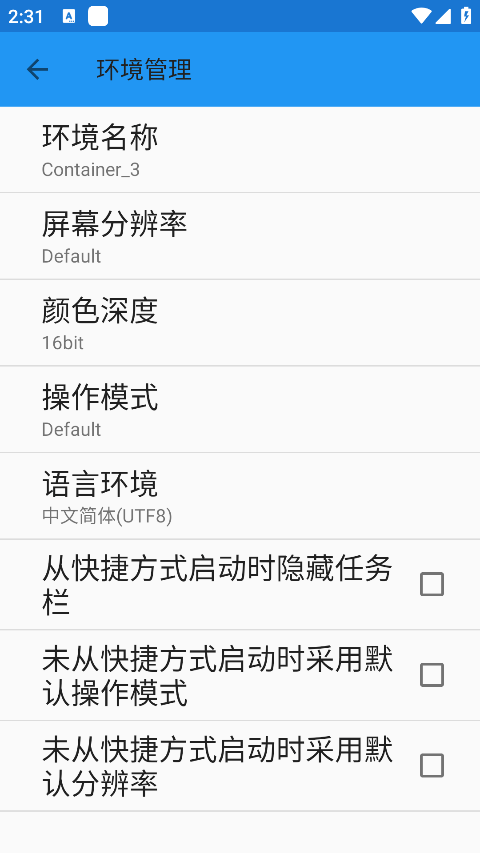 10、可以进行相应的屏幕分辨率的设置以及环境名称、图形渲染器;