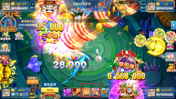 1、强悍捕鱼道具随时拥有,加大火力,让大小鱼群无处可逃。