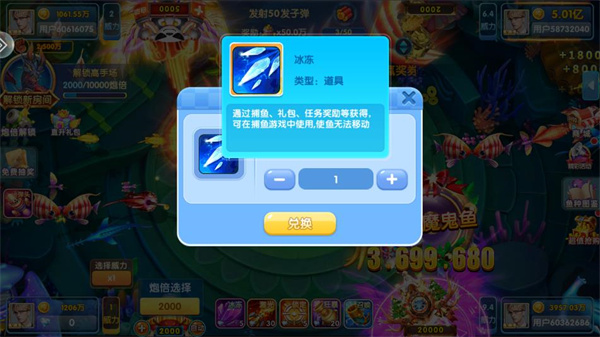 2、获取权益加成会让你获得更多金而或道具,使用冰冻技能可以冻住所有鱼儿