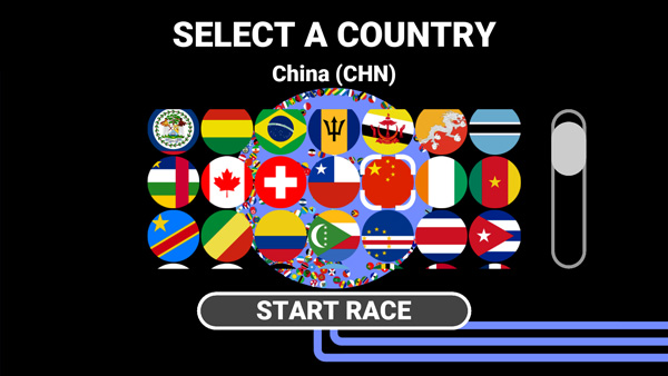 3、设置好后,点击play开始,选择一个国家旗帜的弹珠;