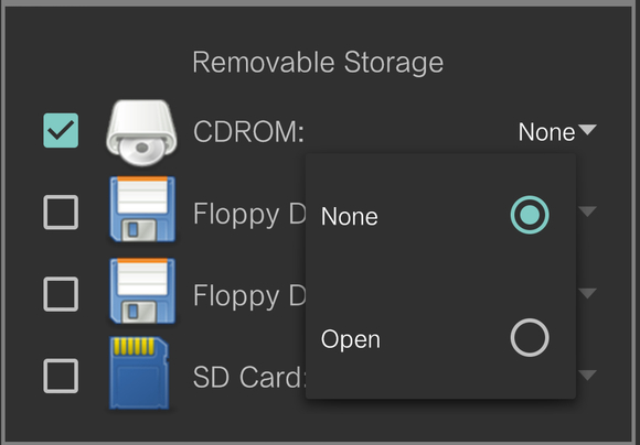 可移动存储,这个没什么好说的,如果要在手机上用iso安装系统的话可以通过cdrom这行来选择iso镜像