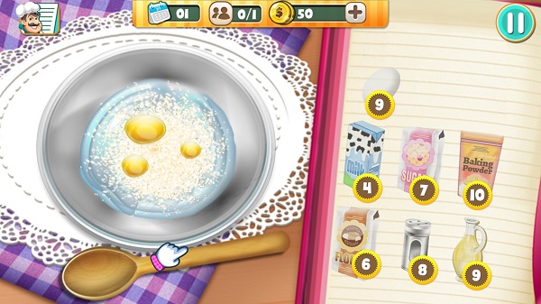 模拟现实打造的订单系统,需要玩家根据顾客需要进行蛋糕制作。详细的操作步骤先从配料做起,把水、黄油、鸡蛋等食材按一定比例倒入碗中并搅拌均匀,倒入模具开始烘烤,最后加上令人惊叹的彩色蝴蝶结、心形图案、花洒或水果片,享受烹饪和美味的甜点!