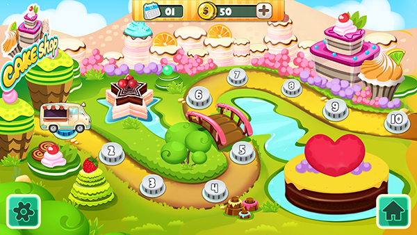 2D平面给玩家较为直观的游戏体验。整个画面处理上都是较为细腻的,玩家在游戏中可以通过手指拖拽的方式观看蛋糕的装饰,将蛋糕的烹饪凸显的更加逼真形象。当然身为蛋糕店老板,在蛋糕的制作方面设计的更是没话说,色彩鲜艳光芒四射的蛋糕设计,给玩家更为直观的视觉体验。