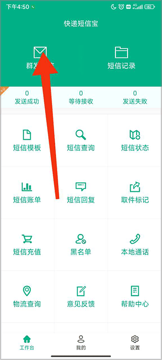 1、下载好快递短信宝app,打开软件,点击群发消息;