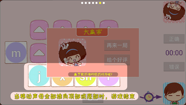 6、当移动声母全部推向顶部或底部时,游戏结束。