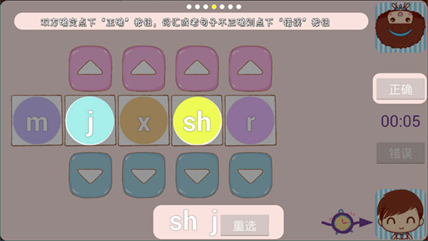 4、双方确定后点下“正确”按钮,词汇或者句子不正确则点下“错误”按钮;