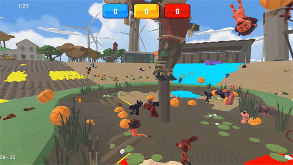 3、接下来就是开始玩游戏啦!左边是移动方向盘,右边是跳跃、滚动、向前扑功能键,你只要在规定时间内让你变成达标人数里面的其中一个,就可以继续开始进行同样的关卡进行淘汰制,当人数达到1就表示通关成功了。