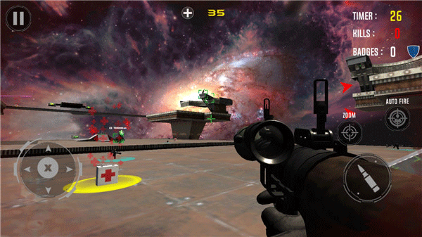 死亡竞技场最新版是一款十分有趣的fps枪击种类手机游戏,英文名称Death Match Battle Arena,该游戏的背景设置在未来的空间竞技场,在一次执行任务的中途你的宇宙飞船忽然发动机熄火发生了常见故障,但你的后边又有敌军前去追捕,你需要守护你的太空战舰阻拦对手进到到你的军舰中,在你的增援来临以前坚持到底,十分磨练用户的操作技能和灵巧水平。