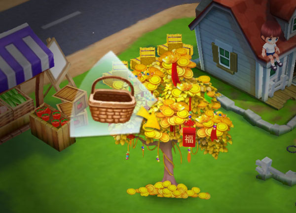 3、看到摇钱树上方那个布袋图像没,是不是很熟悉!没错,在农场里的一切,当然都要种植啦,所以摇钱树也是需要种植的啦。