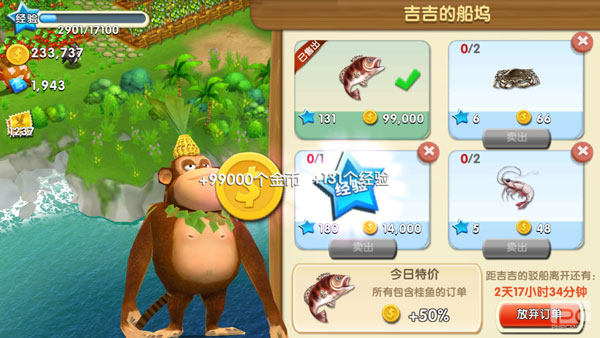 6、吉吉的船坞中的订单大都是有关于海产,所以这个在玩家后期才能来完成!