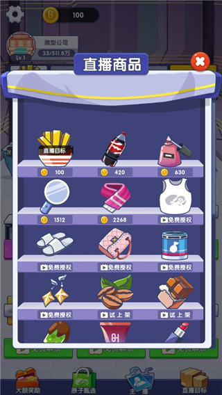 1、进入游戏,首先花费100金币解锁直播间,之后选择上播。