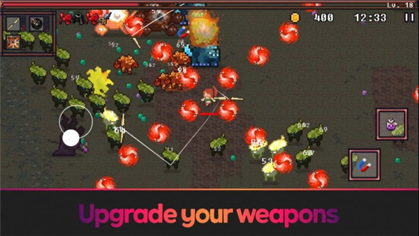 游戏玩法简单暴力:击败更多怪物会提升等级,每次战斗可以选择适合自己的武器,还有丰富的法术辅助。多样化的地图设计让每局都有新乐趣。对于新手来说,选择角色、熟悉操作并探索道具是关键。升级时可以强化技能或提升角色属性,享受全屏特效带来的视觉盛宴。