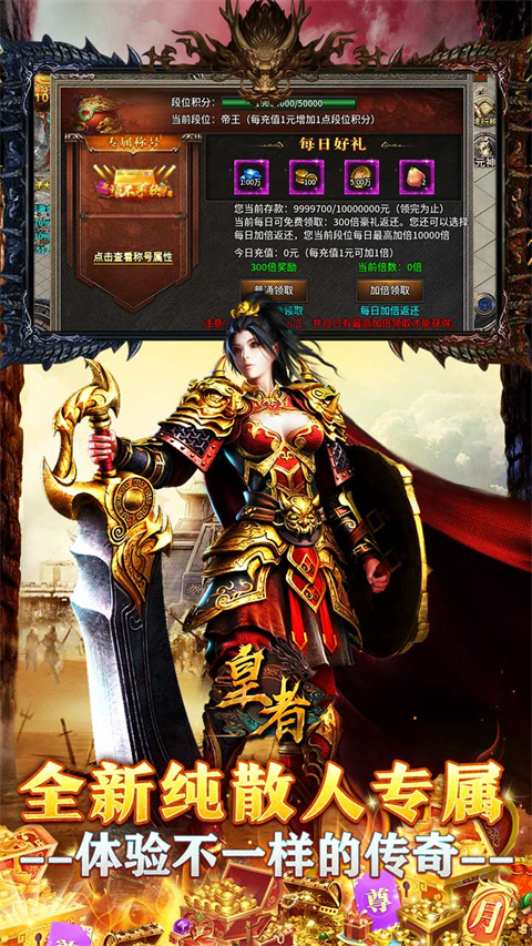 我觉得这款游戏非常适合喜欢传奇风格但又没太多时间肝游戏的玩家,挂机功能特别贴心。如果你是传奇游戏爱好者,不妨试试这款《皇者》,感受一下新开传奇的经典玩法和丰富的装备掉落率!