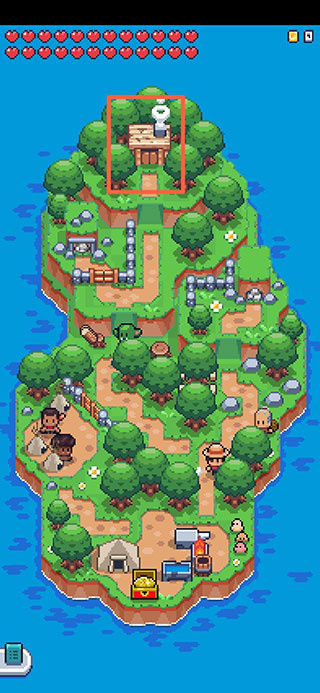 迷你荒岛求生最新版是一款像素风的野外冒险休闲小游戏,游戏中我们的主角流落在了荒岛,开局只有一人和身边一铲子,小岛被大海包围,看上去除了树和石头啥都没有,前途有点堪忧啊!并且小铲子只能铲倒小树,不过玩家们将全部的小树铲完后也会开拓出新的区域,会出现两位当地的土著,接着我们就可以开始挖矿石,使用矿石和木材就能从土著的手里换取斧头。而使用斧头就可以砍倒更大的树木继续进行区域探索,每开拓一段区域就会有新的道具解锁,也会有新的玩法解锁哦!随着继续探索,玩家还能找到位于岛屿上的地牢,里面有各种怪物,在秃顶老头那儿打造的大宝剑就派的上用场了,和怪物们战个你死我活吧!总之随着玩家对于小岛的不断探索,同时也会解锁新的机制,不过迷你荒岛求生游戏中没有死亡惩罚,体力清零了,直接回帐篷睡一觉就能补满,还是比较的休闲啦,喜欢的朋友可以下载试试哦!