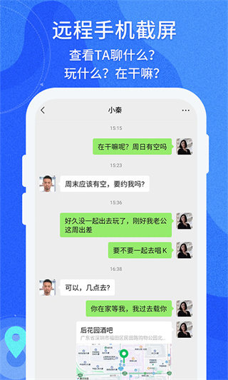 5、远程截屏:通过手机截屏,时刻了解TA手机使用情况,保护TA的安全;