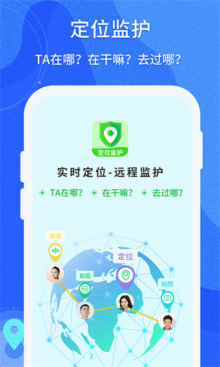 4、远程拍照:通过手机前置、后置摄像头拍照,时刻掌握亲友周边环境情况,保护TA的安全;