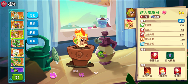 玩过二代应该很熟悉了,但很可惜这作猕猴桃数值非常保守,可能是因为白送的缘故吧,送的太猛了就没人氟了。好在阳光消耗只要125,比芭蕉还是强一些的。