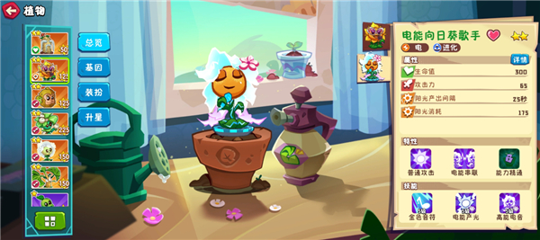 二星就可以常驻15攻+15,大招还能加暴击,并且歌葵虽然是电系植物,但是给的buff不分属性,所有阵容都能带她。唯一缺点是比较贵,不能只靠她产阳光,得和小花一起用。