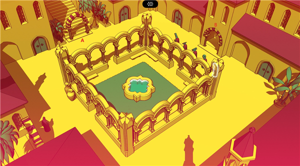 A处通往“十字路口”,B前往“庭院”。