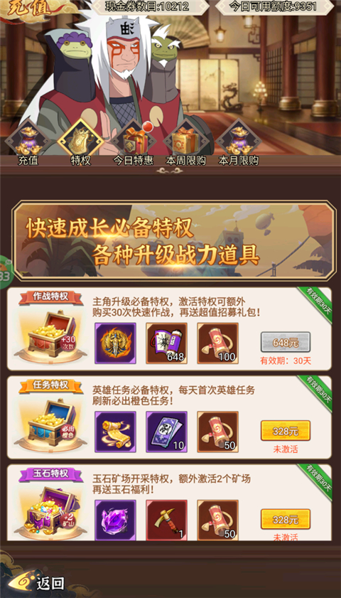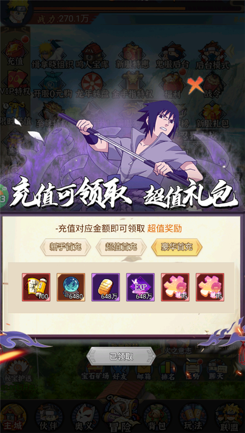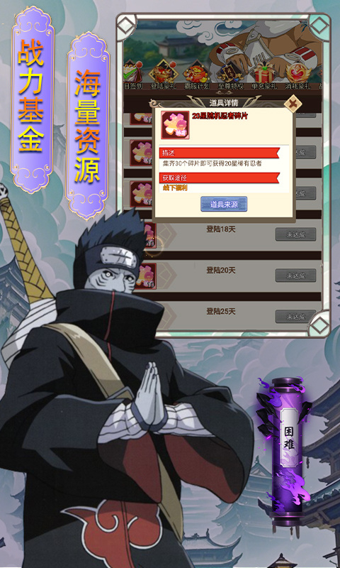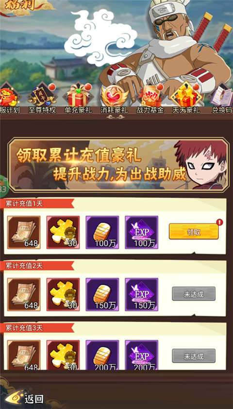 4、首充送海量招募卷轴、金币、忍者碎片。