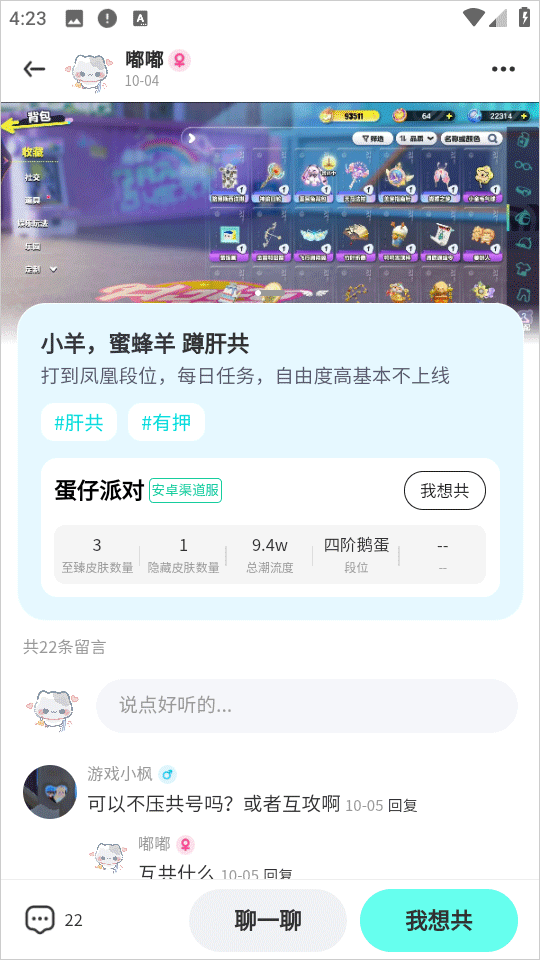 我个人觉得这个app挺有用的,特别是对于那些想省时间又不想氪金的玩家来说。它的操作也很简单,下载安装后几步就能上手,而且精准匹配功能让人轻松找到合适的共号搭子。最让我放心的是平台的安全担保服务,确保账号不会被毁坏或出现违约情况。
